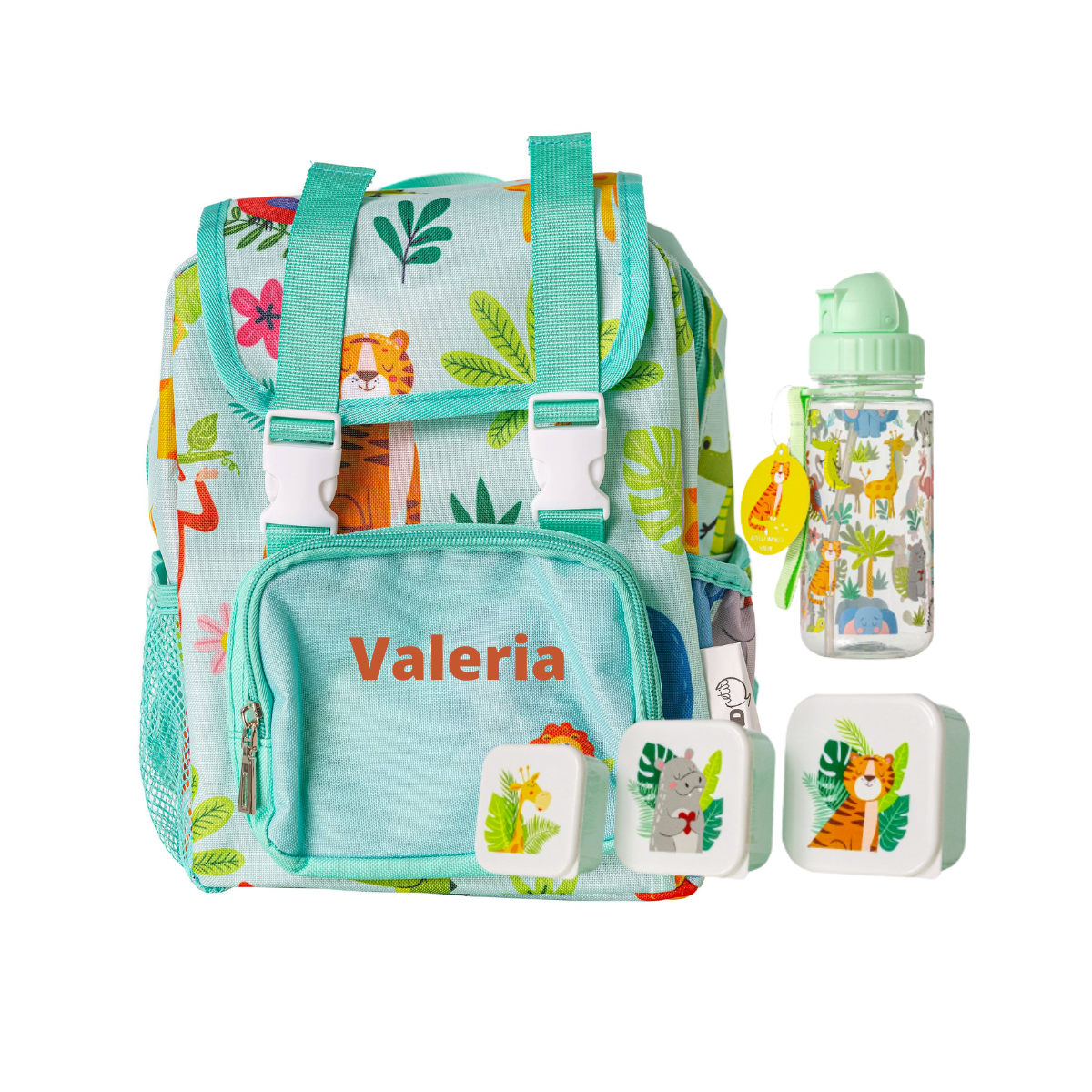 Pack personalizado mochila kawaii Safari Mundo Petit mochila, set de 3 tuppers y botella de regalo